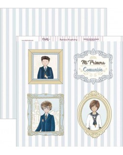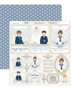 Block de papeles para Scrapbooking Dayka “Comunión Niño”, con 24 papeles de 20×20 cm aprox. (8 pulgadas), por las dos caras, 24 diseños. Diseñados y producidos en España.