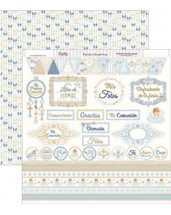 Block de papeles para Scrapbooking Dayka “MI COMUNIÓN ”, con 28 papeles de 20×20 cm aprox., por las dos caras, 28 diseños. Diseñados y producidos en España.