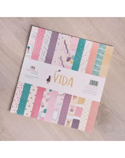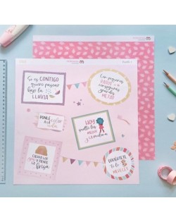 Colección de 12 papeles de scrapbooking a doble cara, más la trasera de la portada también aprovechable. Tamaño 12 x 12 " (30,5 x 30,5 cm)