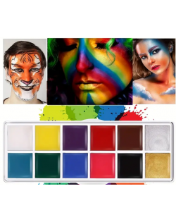 Caja de 12 colores de pintura corporal no toxica e hipoalergenica (base de aceite). Apta para maquillaje fantasia y body paint.