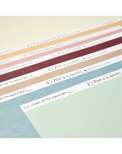 Colección de 6 papeles a doble cara. Por un lado liso y por el otro con efecto textura.
