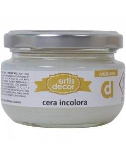 LA CERA INCOLORA ARTIS DECEOR es transparente de fácil aplicación que deja un tacto suave y agradable, que sella y protege la pieza. Aplicar con un trapo limpio, dejar secar y pulir hasta conseguir el brillo deseado. Ideal para la técnica Shabby-Decapado.