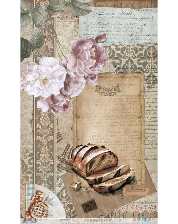 Papel de arroz decorado  con un gramaje muy bajo cuya ligereza y adaptabilidad a casi cualquier superficie lo hace apto para cualquier técnica de decoupage. Permite forrar tanto por el interior como del exterior en superficies planas y redondas. Sobre el cristal es posible mantener la transparencia, sobre tela mantener la suavidad y sobre el mobiliario permite decorar el forro interior.