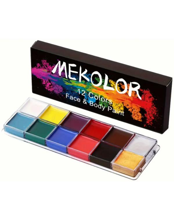 Caja de 12 colores de pintura corporal no toxica e hipoalergenica (base de aceite). Apta para maquillaje fantasia y body paint.