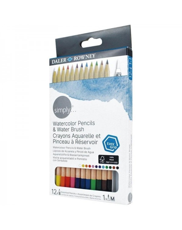 Simply Set Lápices de colores acuarelables hexagonales 12 Uds. + Pincel rellenable