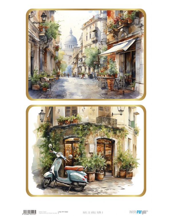 Papel de arroz decorado  con un gramaje muy bajo cuya ligereza y adaptabilidad a casi cualquier superficie lo hace apto para cualquier técnica de decoupage. Permite forrar tanto por el interior como del exterior en superficies planas y redondas. Sobre el cristal es posible mantener la transparencia, sobre tela mantener la suavidad y sobre el mobiliario permite decorar el forro interior.
