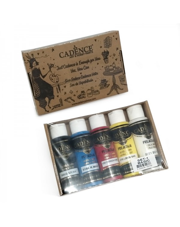 Set de 5 botes de pintura acrílica de alta calidad adecuada para todos los fines utilizados en pintura decorativa, decoración del hogar y proyectos generales de manualidades. A base de agua, no contiene ninguna sustancia tóxica dañina para la salud (cumple con las normas CE y EN 71).
