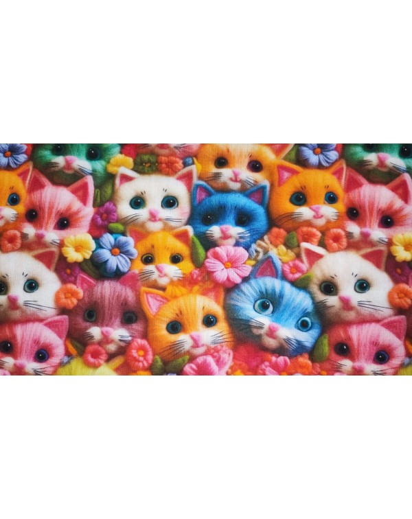 Tejido de algodon 100 % con estampacion de unos preciosos gatitos de peluche