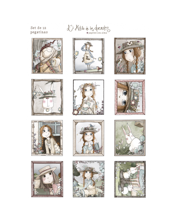 12 pegatinas transparentes. Medida de cada pegatina 4 cm x 4,5 cm aprox. Blíster de 15 x21 cm.