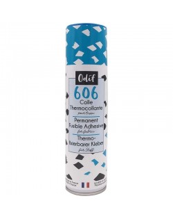 Spray de Adhesivo permanente que se activa con el calor. (Termo fusible) El 606 permite pegar la tela definitivamente. Adhiriéndose con la plancha durante 45 segundos en posición algodón. Resistente al lavado a 40ºC y a la limpieza en seco.