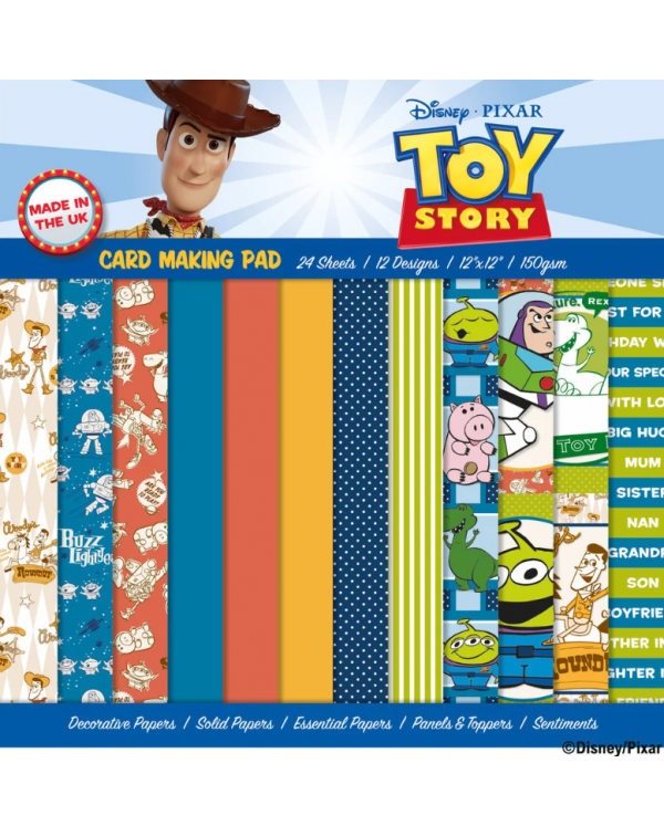 Para los amantes de la diversión de todas las edades, Woody y sus amigos son un gran clásico de Disney. ¡Los diseños oficiales en este versátil bloc de 12 x 12 pulgadas lo convierten en un kit completo para hacer tarjetas! El bloc incluye papeles decorativos, papeles lisos, papeles esenciales, paneles, adornos y sentimientos. 12 diseños: papeles decorativos de 150 g/m² (3 diseños, 2 hojas de cada uno), papeles esenciales de 150 g/m² (2 diseños, 2 hojas de cada uno), papeles de colores lisos de 150 g/m² (3 colores, 2 hojas de cada uno), hojas de adorno de 150 g/m² (2 diseños, 2 hojas de cada uno), hoja de adorno de panel de 150 g/m² (1 diseño, 2 hojas), hoja de sentimientos y relaciones (1 diseño, 2 hojas).