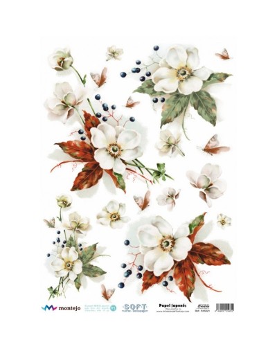 Exclusivo papel de arroz diseñado y fabricado en España con muchísimo cariño y esmero. Perfecto para usar en trabajos de decoupage y decoración.